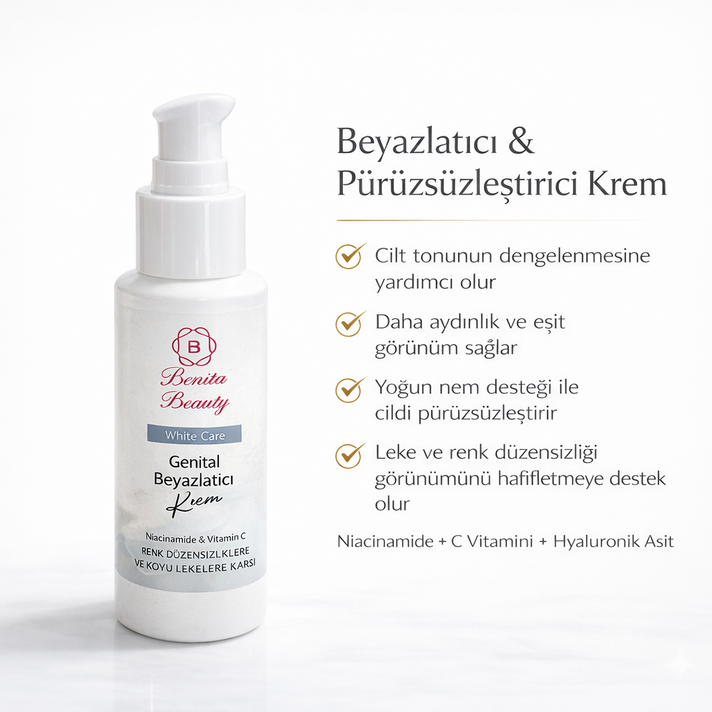 Genital Bölge Beyazlatıcı Krem, bu hassas bölgenin ihtiyaç duyduğu nem ve bakımı sağlayarak cilt görünümünü dengelemeye yardımcı olur.